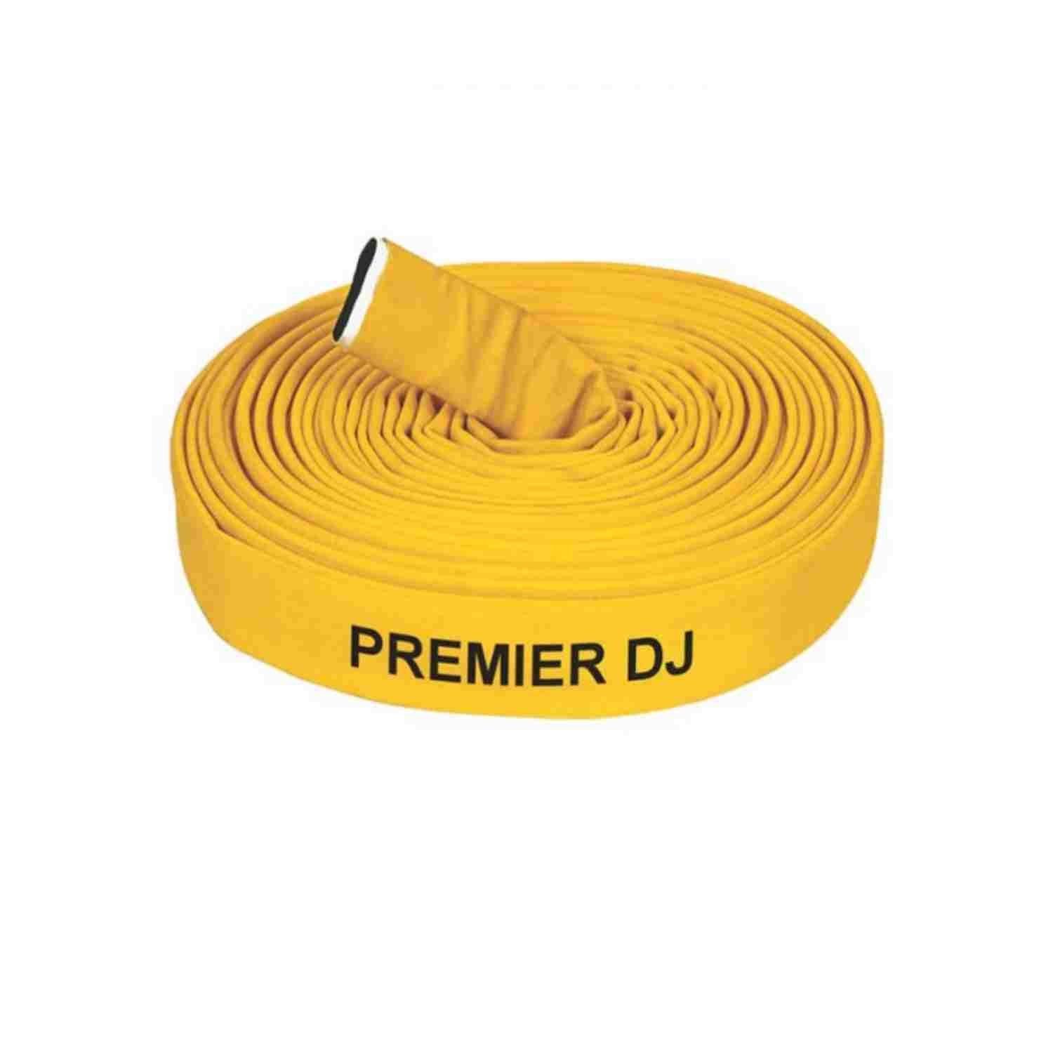 Newage Premier DJ Fire Hose (Hydroline) is a heavy-weight and durable hose designed for normal day-to-day wear and tear and a heavy interior liner for long life. The outer jacket comes with a black stripe and a heavy yellow urethane coating for greater visibility and abrasion resistance. This treatment also greatly reduces moisture absorption through the jacket.