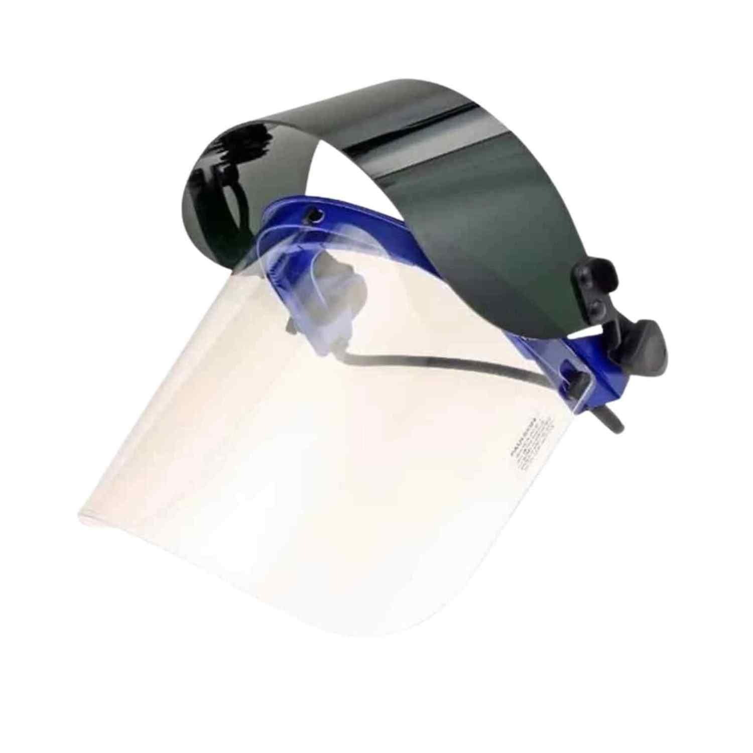 - Injection-molded clear face shield with a gold-on-shade 5 green hard-coated flip-front shield.